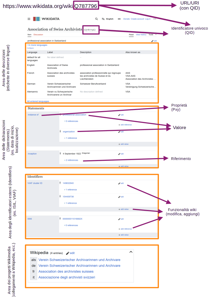 Esempio con l’elemento Q787796 (Associazione degli archivisti svizzeri)